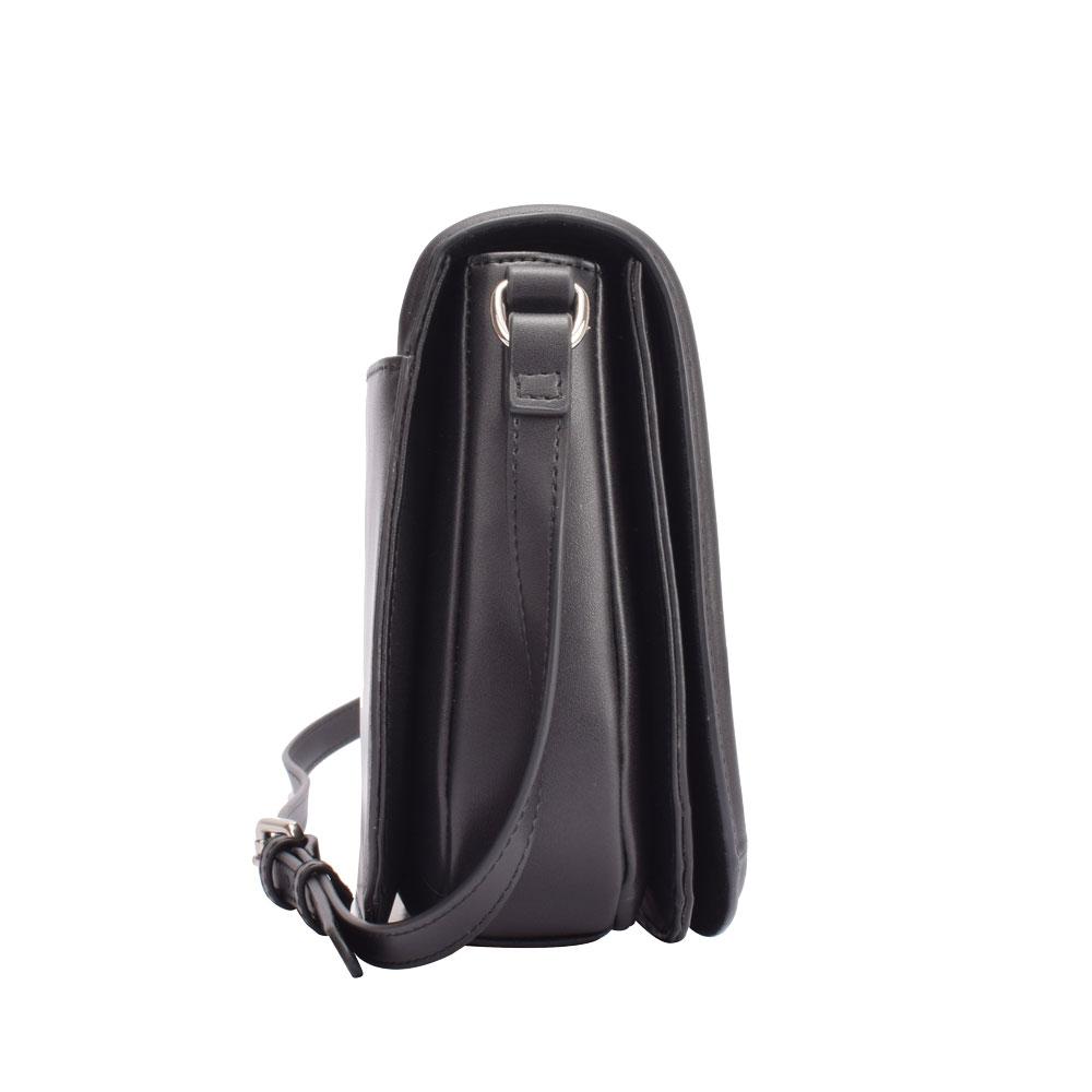 Smooth leather with attached adjustable cross body/ shoulder strap. Main compartment with flap magnet closure. Silver metal detailing.
